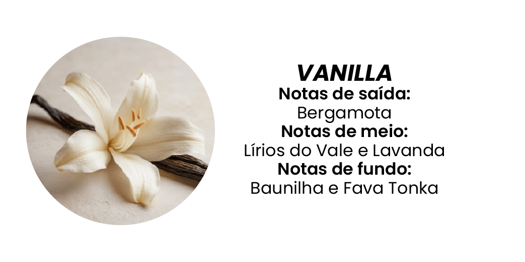 O aroma de Vanilla acalma através da docilidade do seu perfume, remetendo à sensação de afeto, carinho e ternura.